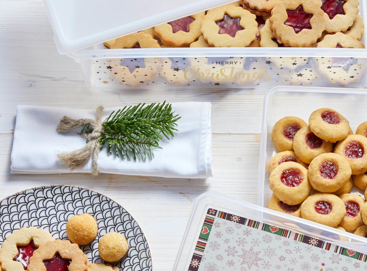 In einer Keksdose bleiben Ihre Kekse, Lebkuchen und Stollen lange frisch. Tipp: Kekse in eine Vorratsdose füllen, dieses mit einem Tannenzweig und einer hübschen Schleife versehen und als ganz persönliches Geschenk weitergeben.