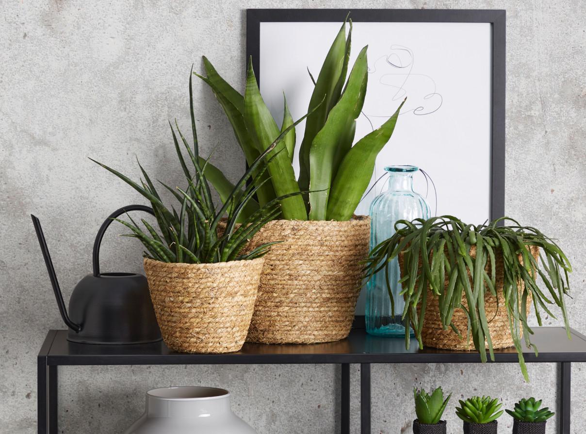 Mit einem von der Pflanzenwelt inspirierten Wandschmuck setzen Sie ein Highlight. Die Pflanzen selbst werden in naturfarbenen, schwarz/weißen, oder grünen Übertöpfen präsentiert. Vorhänge, Teppiche, Kuscheldecken, Kissen in zurückhaltenden Farben und gläserne Vasen komplettieren den Look.