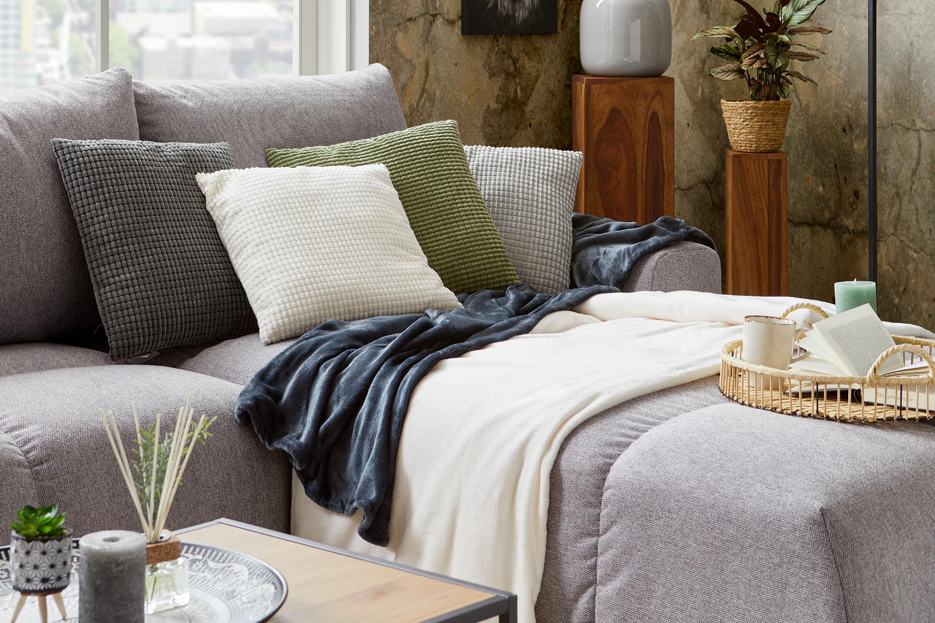 Kuschelige Zierkissen in grün, beige und grau