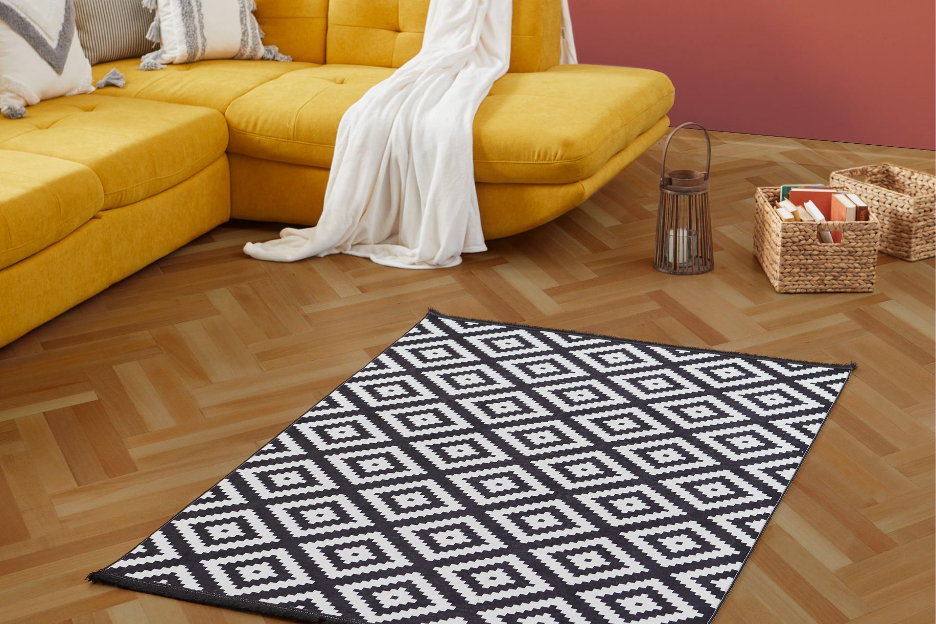 Fellteppiche, haben jetzt Hochsaison. Geflochtene Elemente unterstreichen den natürlichen Charakter.
