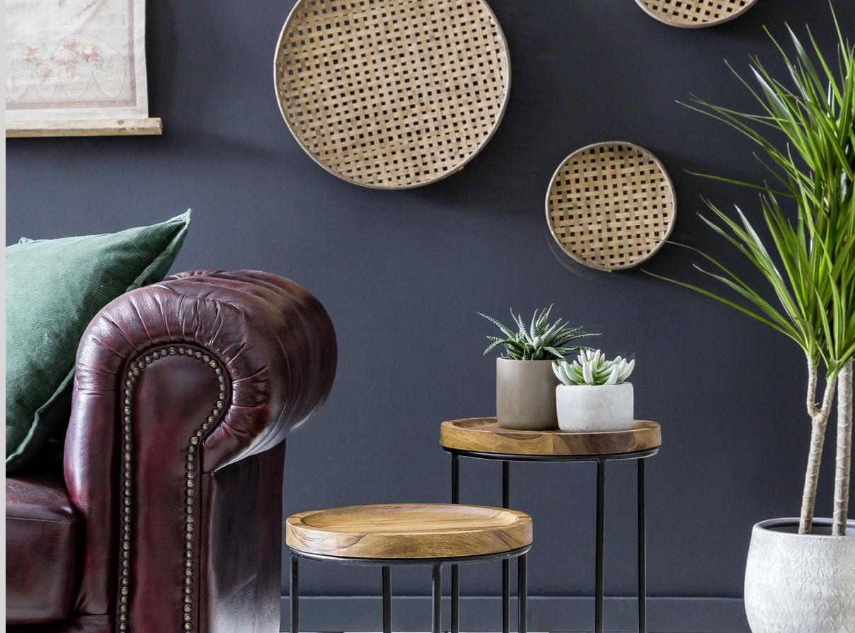 Dunkles massives Holz ergibt im Zusammenspiel mit Samt oder Cord und Leder ein gemütliches Ambiente, das uns hilft, uns zu erden. Flauschiges, wie z.B.