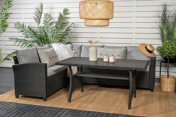 Polyrattan wird wie Rattan verarbeitet und gibt Gartenmöbeln diesen typischen Flechtlook. Jedoch ist es langlebiger und robuster als sein natürliches Vorbild.