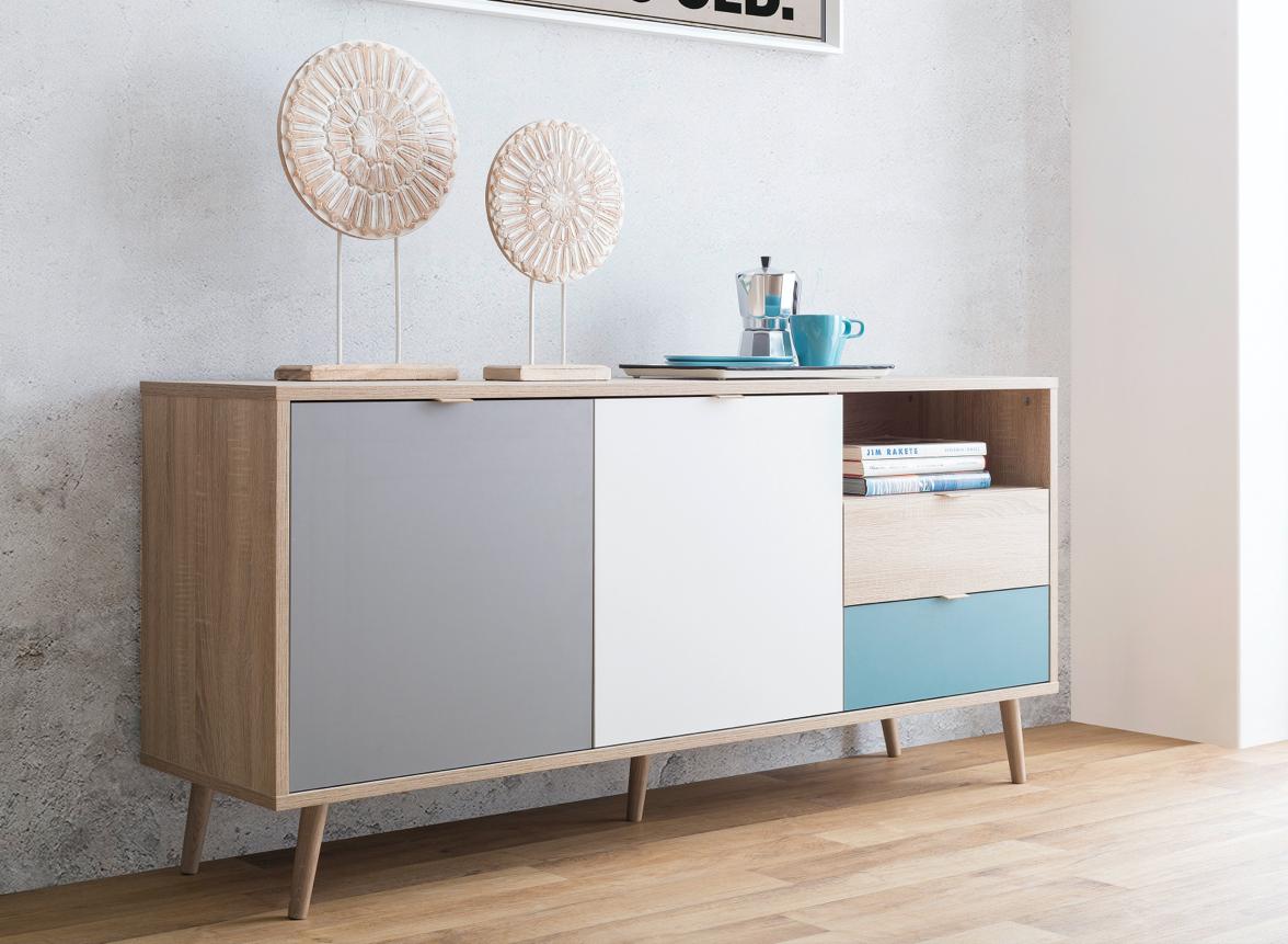 Die offenen oder geschlossenen Fronten des Sideboards machen es zum perfekten Möbel für den Essbereich. Dinge, die man oft braucht oder die besonders dekorativ sind, stellt man einfach in den offenen Fächern ab.