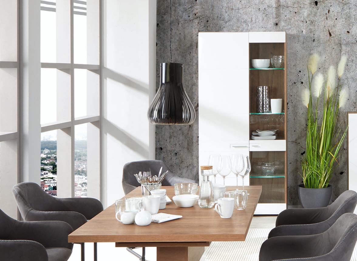In Vitrinen können Sie Ihr Lieblingsservice verstauen und ausstellen. Die Glastüren sorgen für Schutz vor Staub und einen perfekten Blick auf die Ausstellungsobjekte. Tipp: Integrierte Beleuchtung sorgt für einen noch effektvolleren Auftritt.