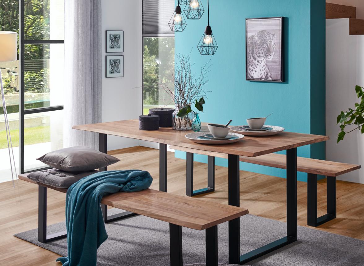 Massives Holz ist beim Esstisch oft die erste Wahl. Dieses Material verkörpert Stabilität und Natürlichkeit. Aber auch Materialien wie Glas, Naturstein, Beton, Kunststoff oder Metall sind auf dem Vormarsch.