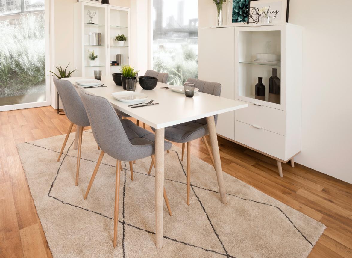 Mit einem Teppich können Sie einerseits den Essbereich schön definieren. Andererseits macht ein Teppich einen Wohnbereich immer gemütlicher, denn beim Sitzen fühlt sich ein Teppich unter den Füßen angenehm an.