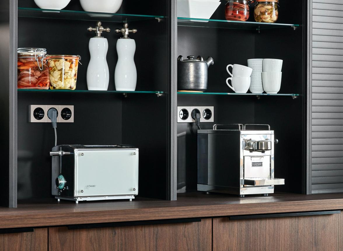 Kaffeemaschine, Wasserkocher, Mixer … Manchmal werden die Steckdosen knapp. Verbauen Sie Steckdosenelemente der versenkbare Steckdosen dort, wo Sie den Strom wirklich brauchen. Tipp: Besonder praktisch sind Steckdosenelemente mit integriertem USB-Anschluss, um das Handy aufzuladen.