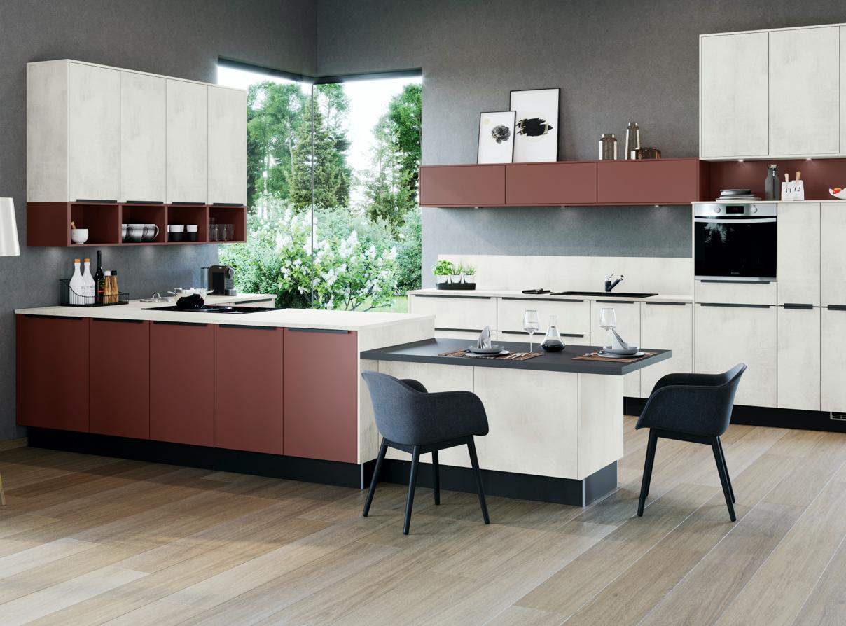 Küchen in Beton- oder Marmoroptik machen gerade Furore! Sie sind robust, vielseitig, und lassen sich mit vielen Materialen und Farben kombinieren.