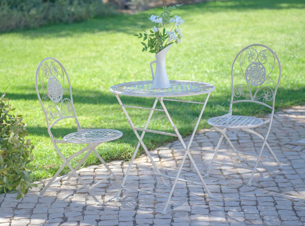 Mit zierlich anmutenden Möbeln aus Holz oder Gusseisen und lieblicher Deko schaffen Sie eine verwunschen Gartenwelt.