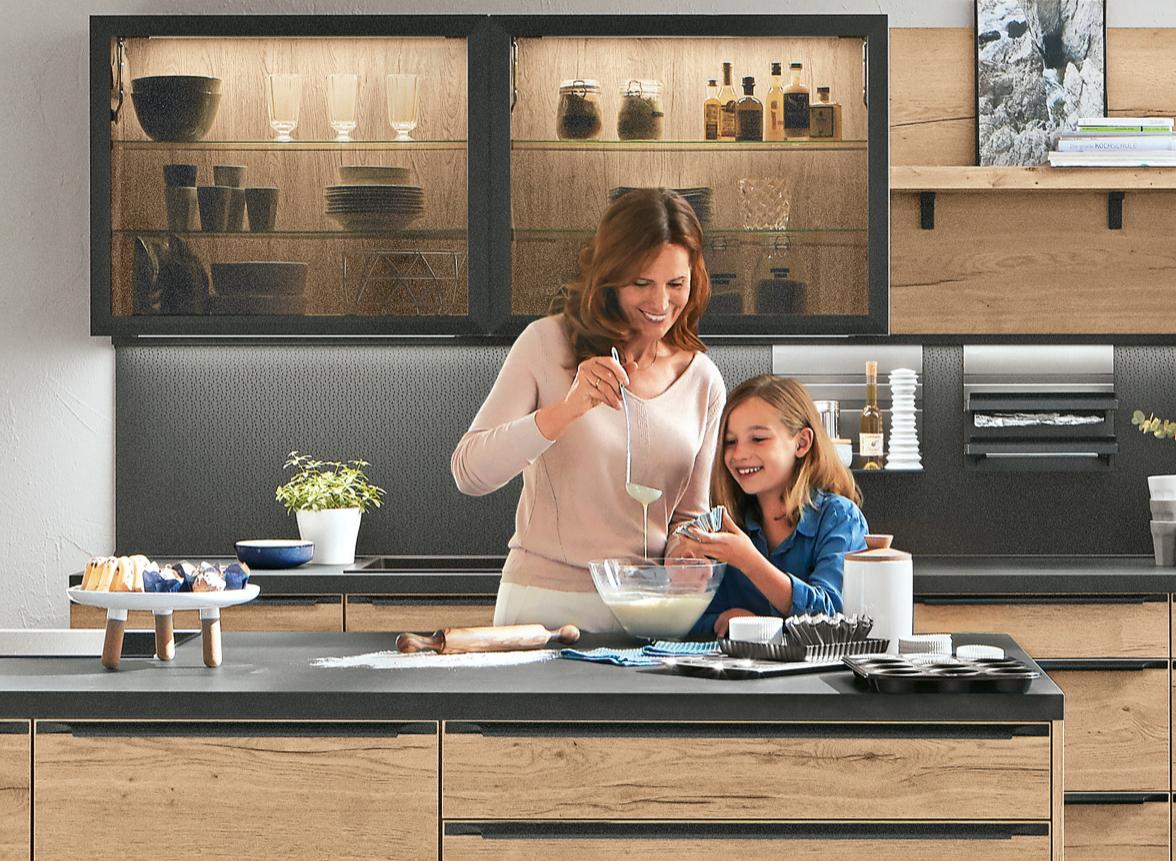 Fürs gemeinsame Kochen und Backen stellen Sie Trittleitern bereit. Sichern Sie die Steckdosen in Ihrer Küche am besten mit Kindersicherungen und bringen Sie scharfes Werkzeug außer Reichweite. Binden Sie die Kinder beim Kochen ein und führen Sie sie langsam und behutsam ans Kochen mit Herdplatte und Backofen heran. In einer Spielküche in der Küche kann Ihr Nachwuchs Handgriffe nachstellen, die er bei Ihnen abgeschaut hat, während Sie ungestört die nächste Mahlzeit vorbereiten.