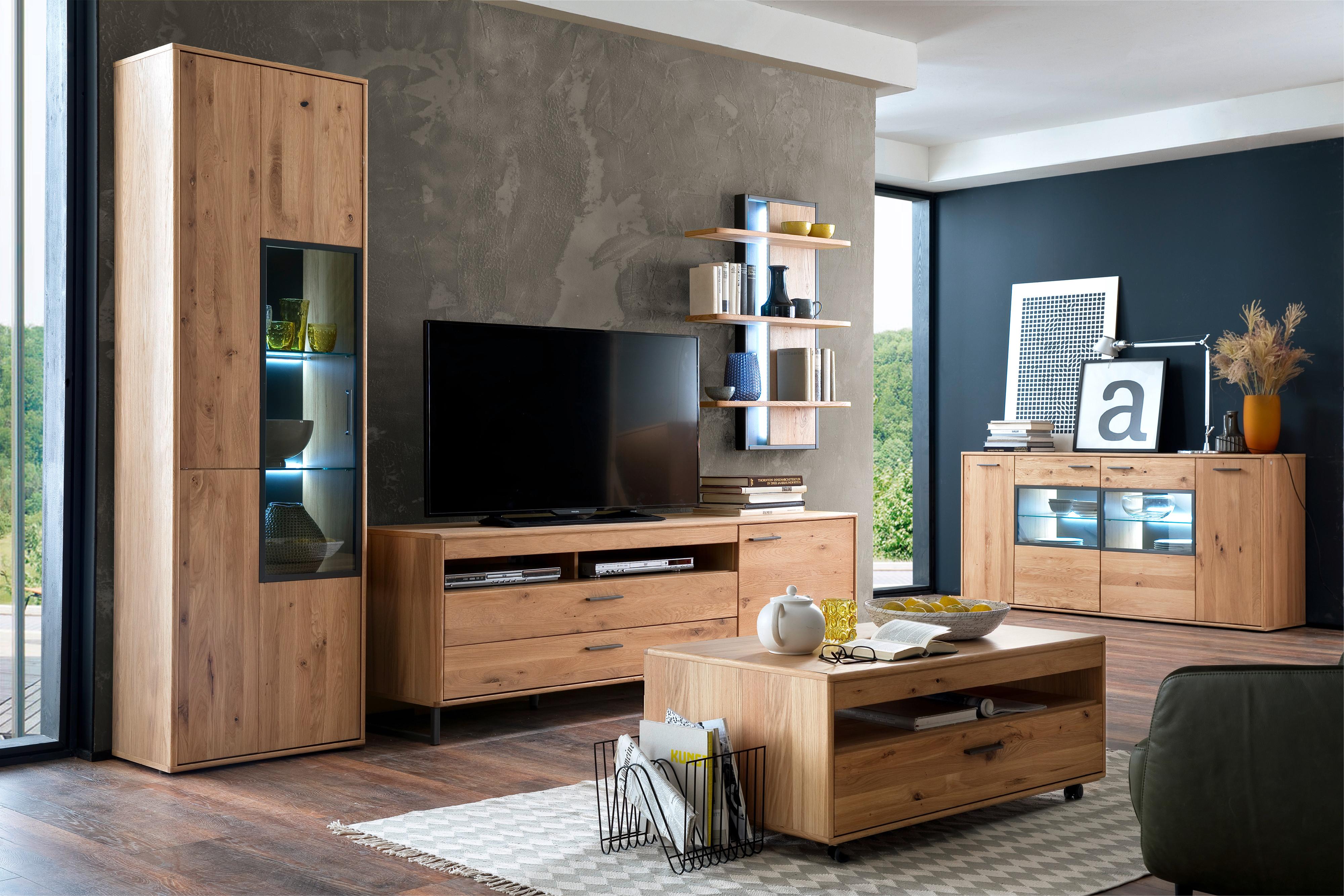 Gemütlichkeit modern interpretiert: Die Einzelmöbel der Wohnserie PORTLAND schenken Ihren Räumen behagliche Wärme und sind gleichzeitig äußerst funktionell. Schubladen, Drehtüren, offene Ablagen und Glaselemente bieten eine durchdachte Aufbewahrung für Geschirr, Tischwäsche, Bücher und Deko. Mit dem Programm PORTLAND gestalten Sie den Wohn- und Essbereich in geschmackvollem Eiche Dekor mit natürlich anmutender Maserung und schaffen damit ein Zuhause, in dem sich alle wohlfühlen. Die Vitrinen, Sideboards und TV-Möbel dieser Serie lassen sich individuell kombinieren und sorgen für einen einheitlichen Look in Holzoptik, der Sie viele Jahre begeistern wird.
