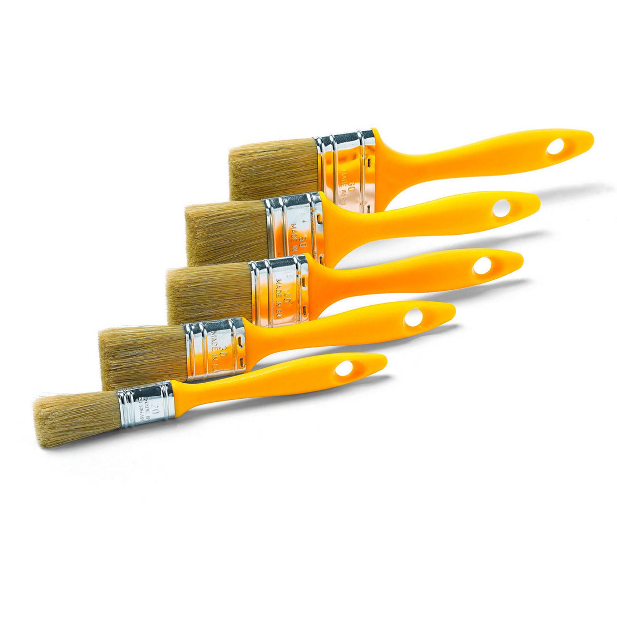 Flache Pinsel sind in verschiedenen Qualitätsstufen erhältlich. Je dichter und länger die Borsten, desto mehr Farbe kann der Pinsel aufnehmen und abgeben. Das sorgt für ein besseres Streichergebnis und spart Ihnen Zeit sowie Material. Ein Qualitätsmerkmal ist auch die Farbe der Borsten: Hochwertige Flachpinsel haben meist schwarze oder dunkle, während preiswerte oft weiße oder helle besitzen.