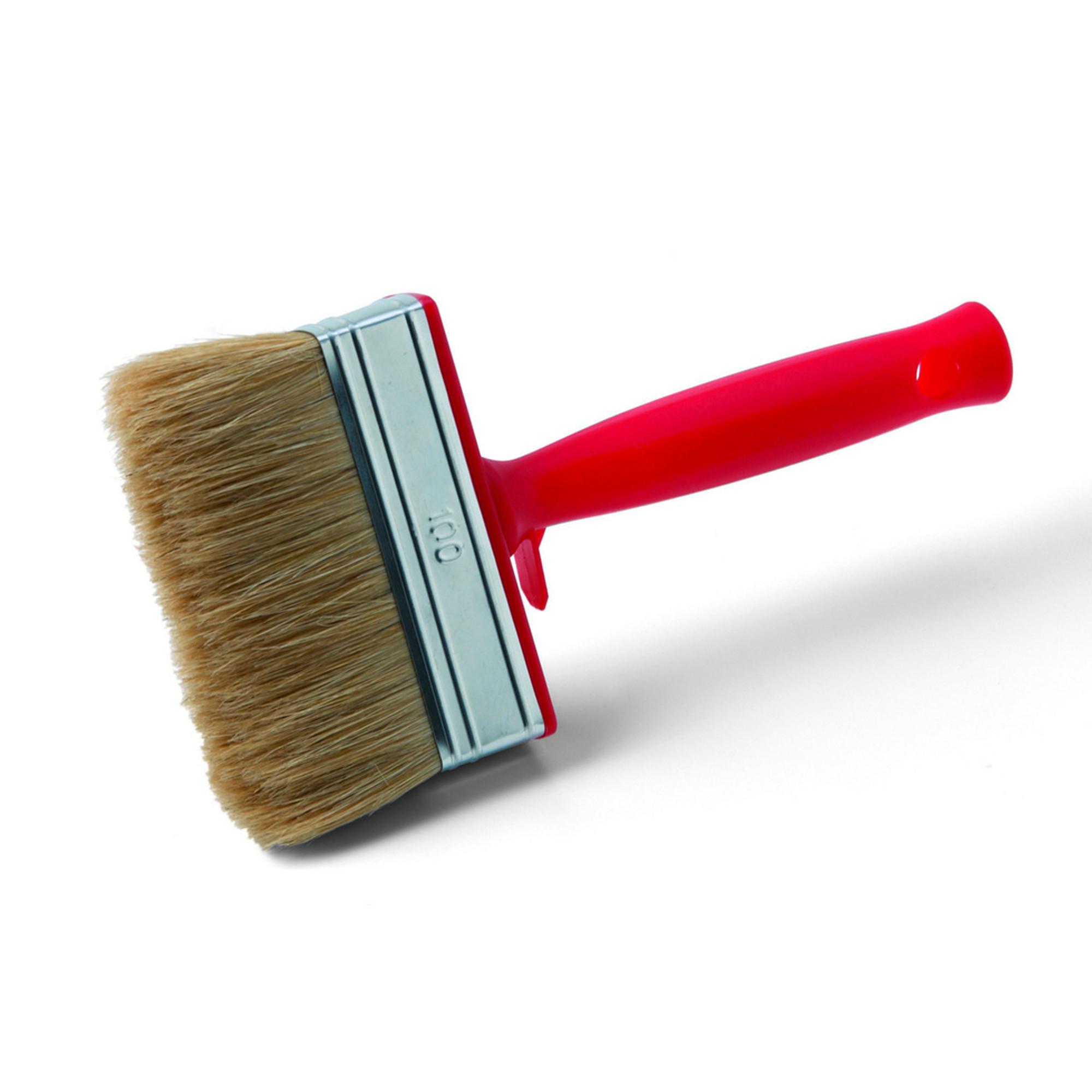 Flachpinsel bestehen meist aus synthetischen Borsten, die besonders langlebig und formstabil sind. Diese Variante ist zudem für alle Farbarten geeignet, ob wasser- oder lösemittelbasiert. Eine Alternative sind helle Chinaborsten, die aus Schweinehaar gefertigt werden. Sie sind besonders weich und elastisch und eignen sich vor allem für dünne Texturen, wie zum Beispiel Lasuren oder Beizen.
