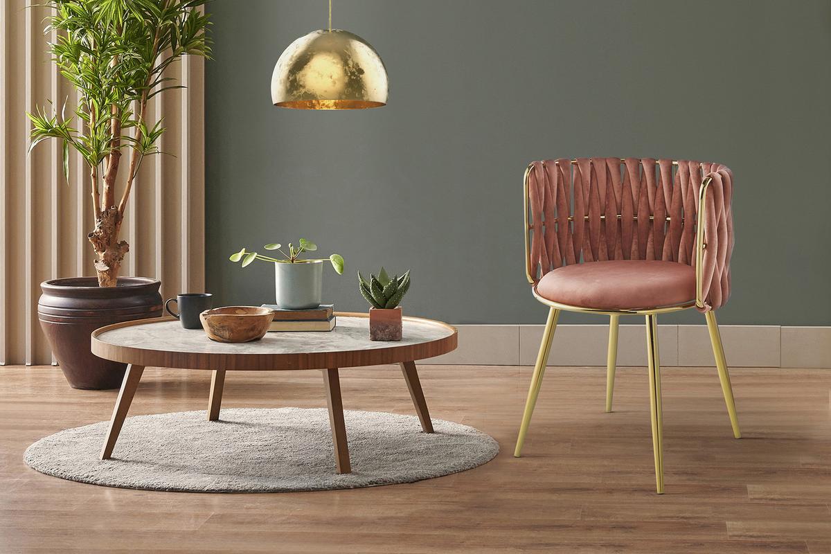Armlehnstuhl-Set Melly 125 Altrosa - Goldfarben/Rosa, Design, Kunststoff/Metall (57/80/53cm) - Kayoom