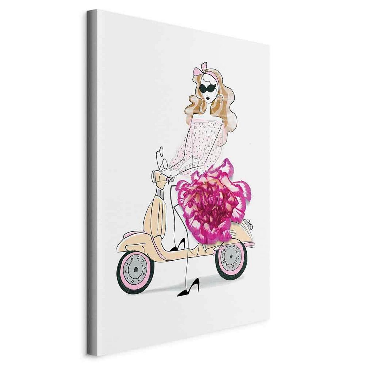 artgeist Leinwandbild Girl on a Scooter Beige Magenta B: 60 cm