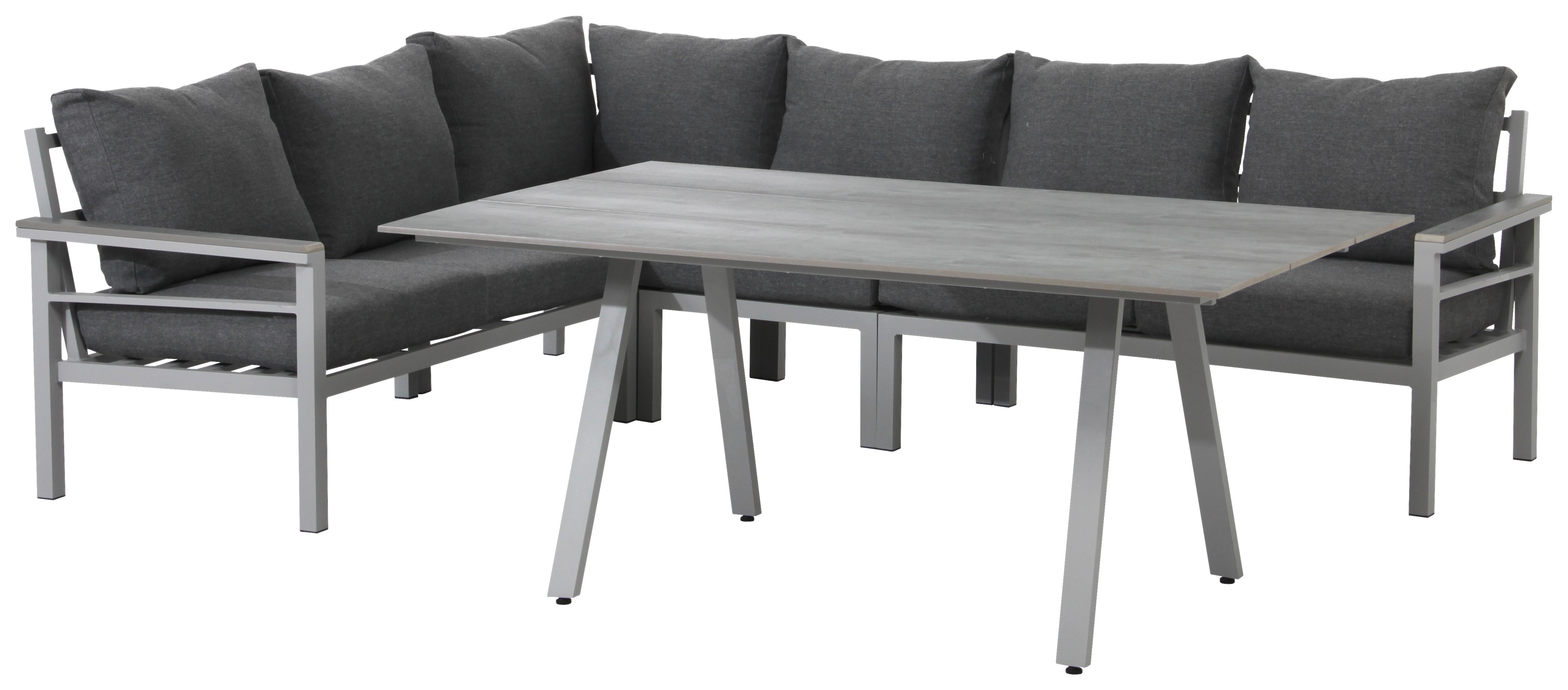 Freuen Sie sich zudem über die mit Komfortschaum gepolsterten, mit Polyester bezogenen Sitz- und Rückenkissen in Grau: Sie zaubern aus dem Ensemble eine wunderbare Relax-Oase.