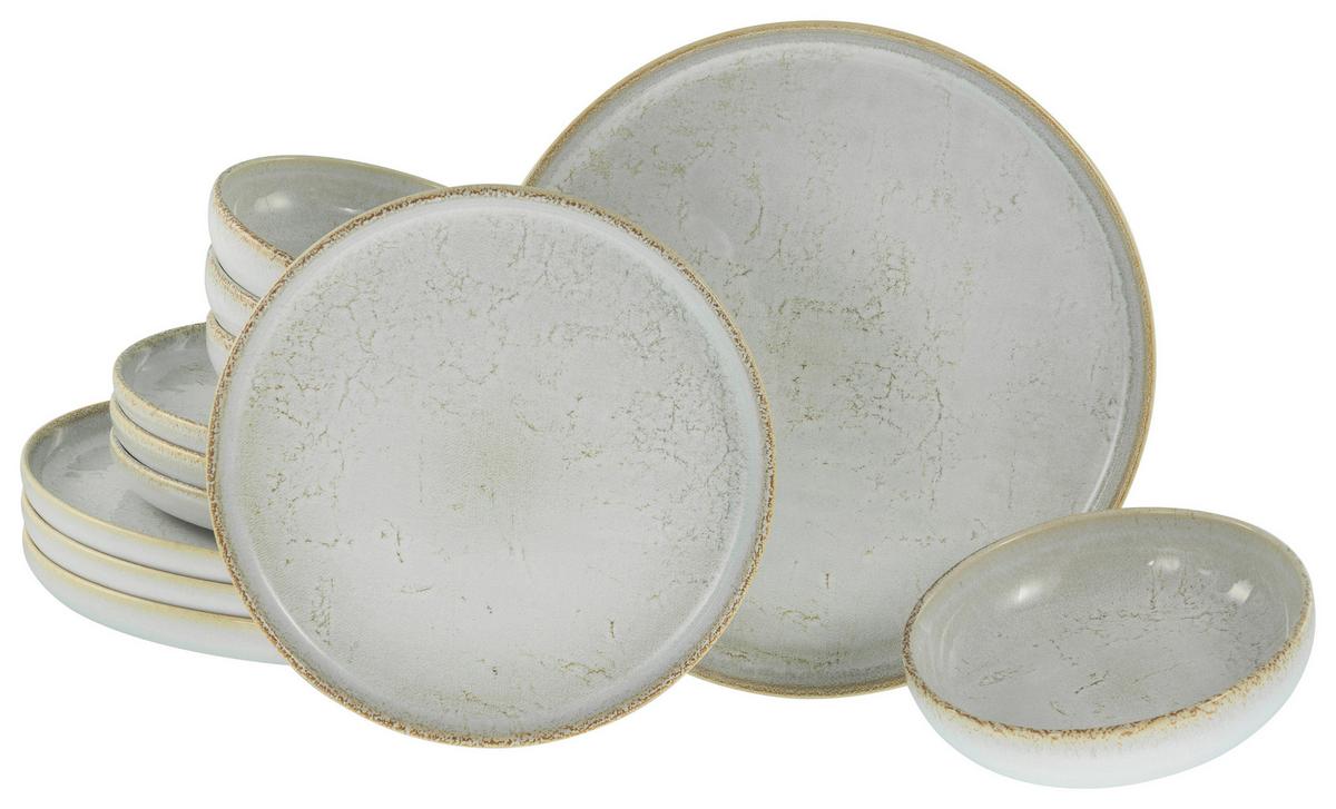 Tafelservice Uno Vintage 12-tlg., Grauweiß - Grauweiß, Basics, Keramik - Creatable