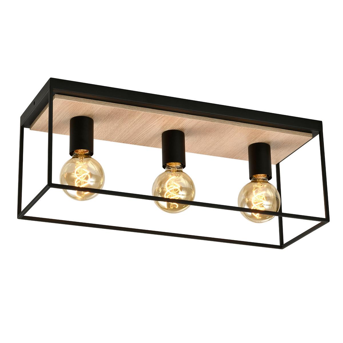 Deckenleuchte 5065/PL3 - Eichefarben/Schwarz, Natur, Metall (54/20/18cm)