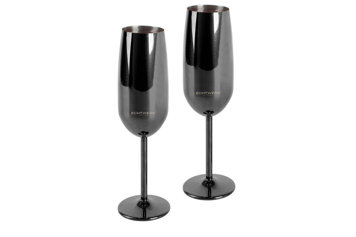 Sektgläser Echtwerk Schwarz Hochglanz, 2er Set - Schwarz Hochglanz, Basics, Metall (6,3/6,3/22,5cm) - EchtwerkEchtwerk