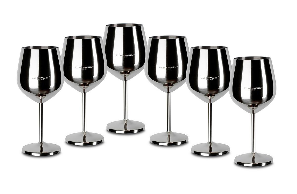 Sechs Weingläser aus Metall in Edelstahlfarben