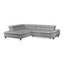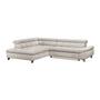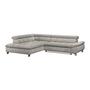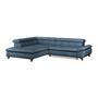 Das Ecksofa GEMINI kombiniert modernes Design mit hohem Komfort. Bezogen mit weichem Chenille-Stoff in Dunkelblau und ausgestattet mit drei verstellbaren Kopfstützen, lädt es zum Entspannen ein.