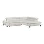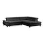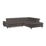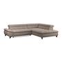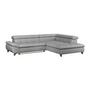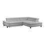 Das Ecksofa GEMINI kombiniert modernes Design mit hohem Komfort. Bezogen mit weichem Chenille-Stoff in Hellgrau und ausgestattet mit drei verstellbaren Kopfstützen, lädt es zum Entspannen ein.