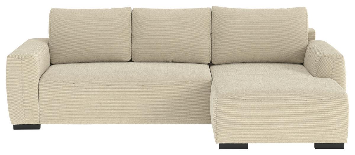 Ecksofa mit Bettfunktion Giro Cord beige, B: 252cm Cordbezug: Beige • Bettkasten • Füße: Kunststoff, Schwarz • BxHxT: ca. 252x86x170 cm • Liegefläche: ca. 202x128 cm