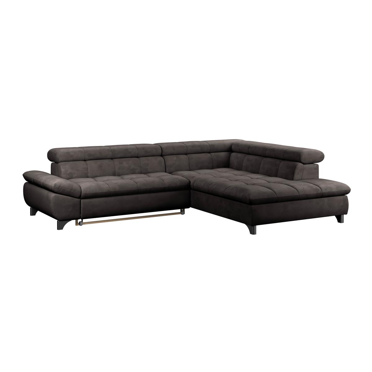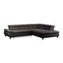 Das Ecksofa GEMINI kombiniert modernes Design mit hohem Komfort. Bezogen mit weichem Chenille-Stoff in Graubraun und ausgestattet mit drei verstellbaren Kopfstützen, lädt es zum Entspannen ein.
