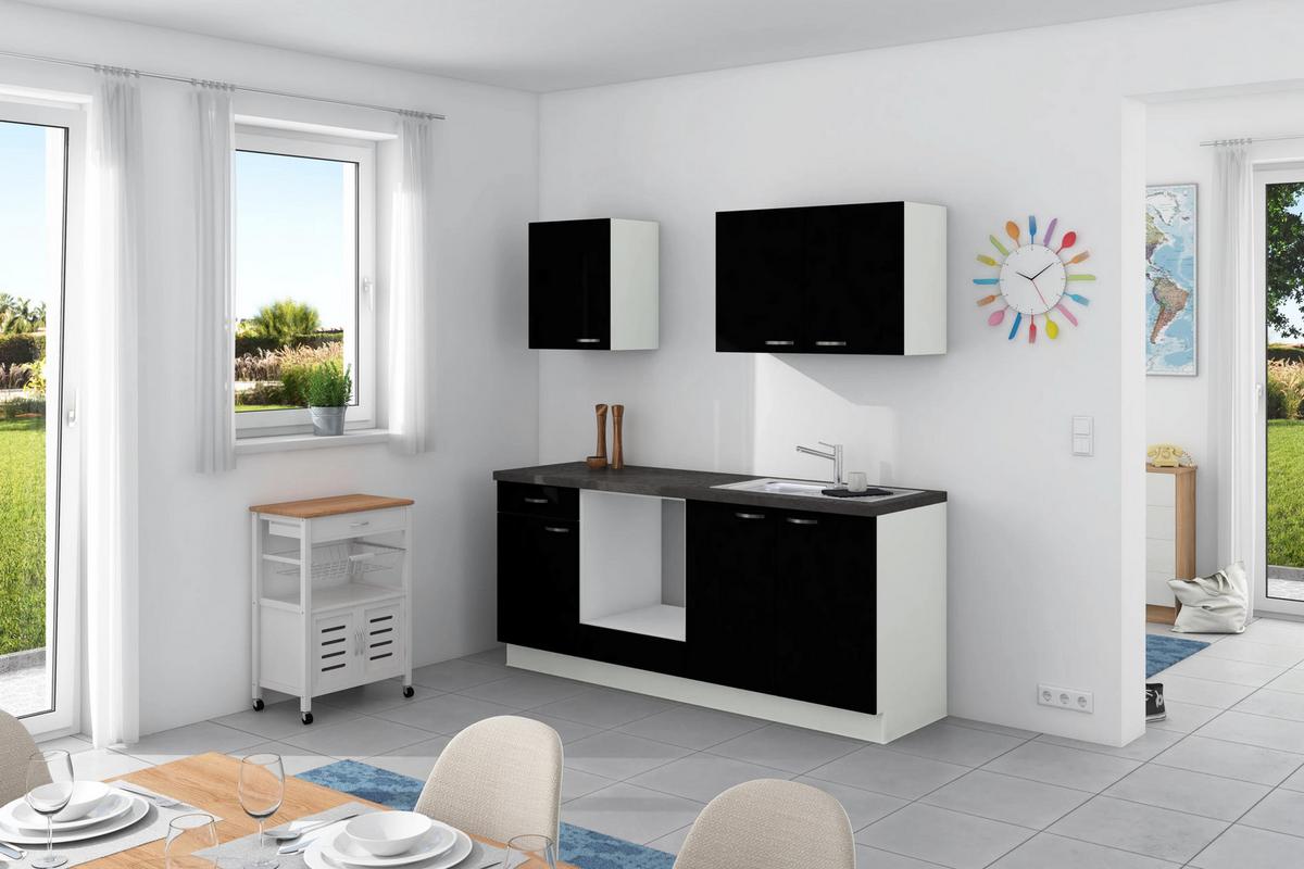 Küchenzeile Clean ohne Geräte ohne Geräte B: 200 cm - Anthrazit/Schwarz, Design, Holzwerkstoff (200cm) - Express