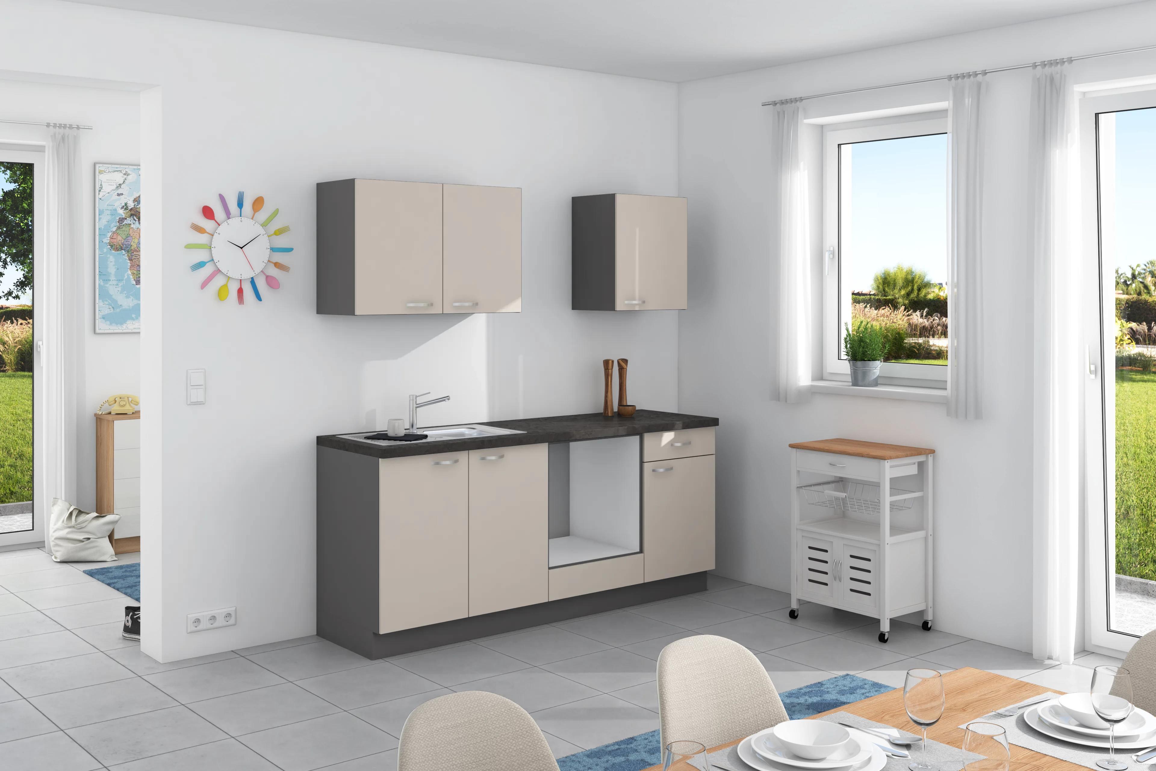 Nicht im Lieferumfang enthalten: Armatur, Beleuchtung, Besteckeinsatz, Mülltrennsystem, Nischenrückwand