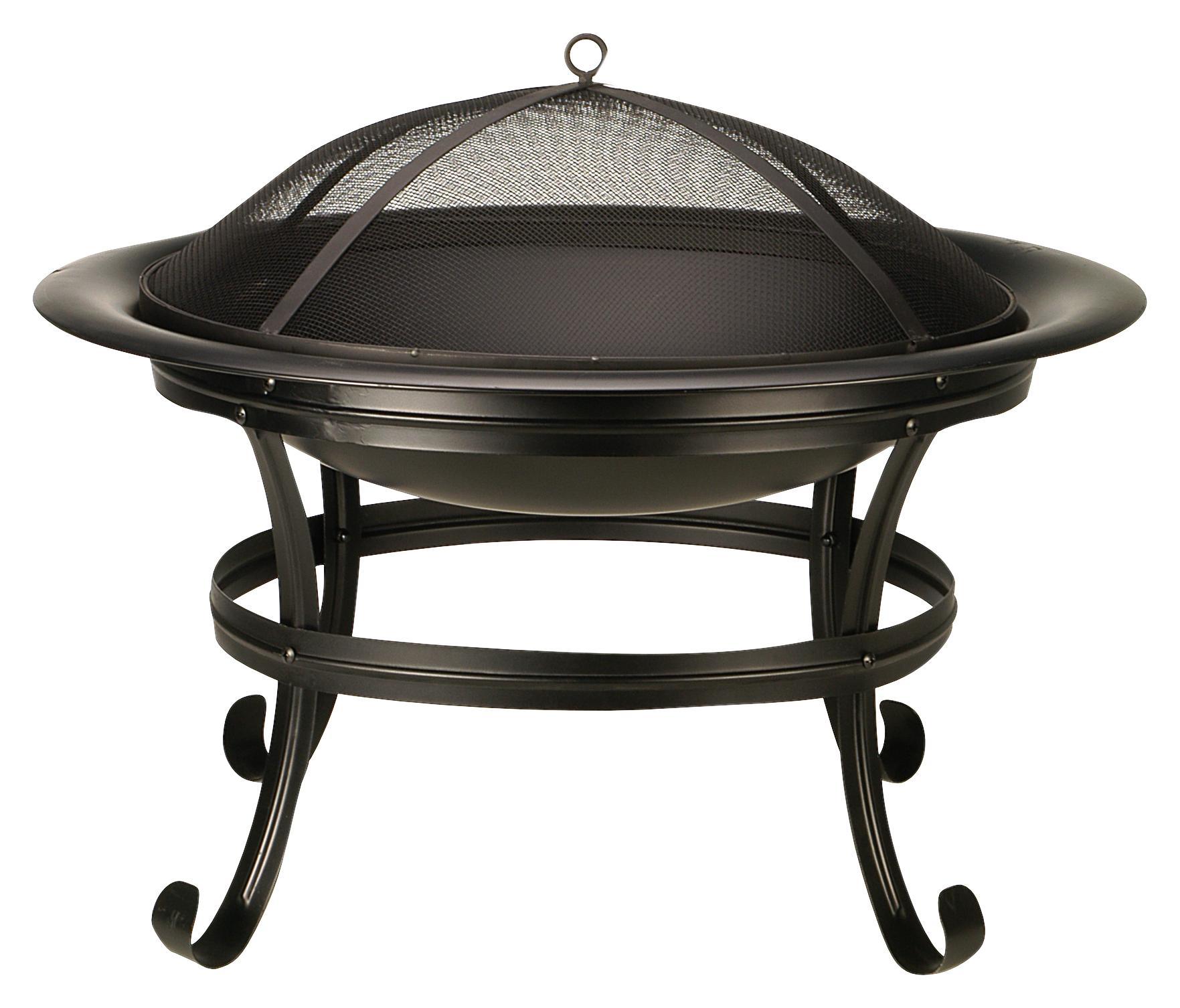 Der runde Feuerkorb mit den Maßen 77 x 17 cm und einer Wandstärke von 17 mm besteht aus Stahl in Schwarz und steht auf 4 stabilen Füßen, die sicheren Stand garantieren und mit Ihrer Volutenform auch für optische Akzente sorgen. Dank des im Lieferumfang inkludierten Funkenschutzes sind Sie und Ihre Umgebung auch bei Wind gut geschützt.