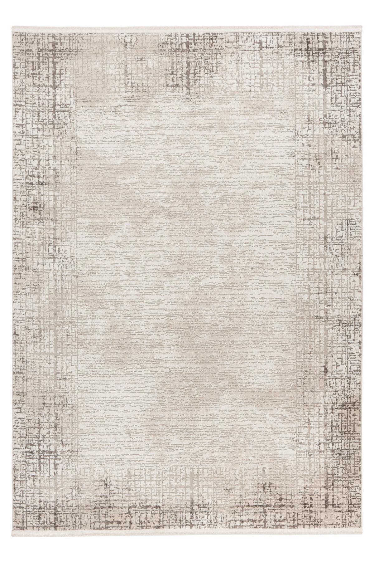 ca. 120 x 170 cm (B x L) große Teppich ruhige Eleganz in den Raum.