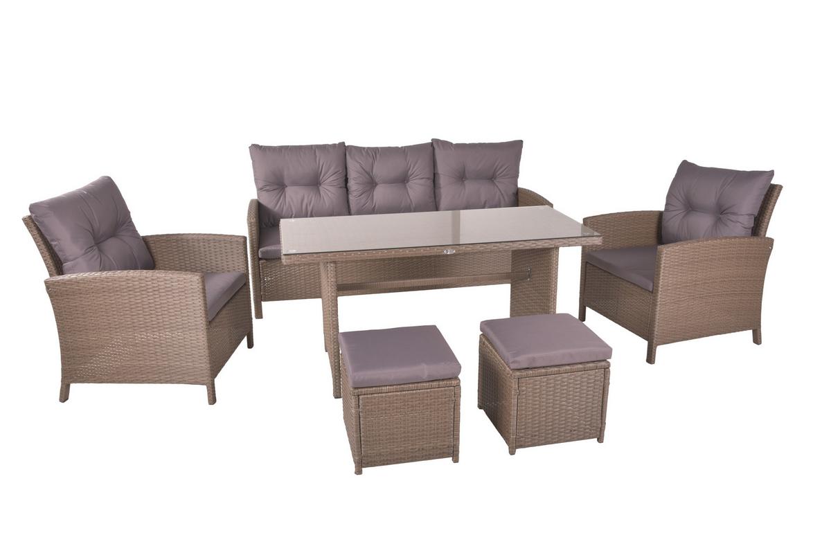 Gartengarnitur 6--Teilig Sevilla Metall/Kunststoff mit Kissen