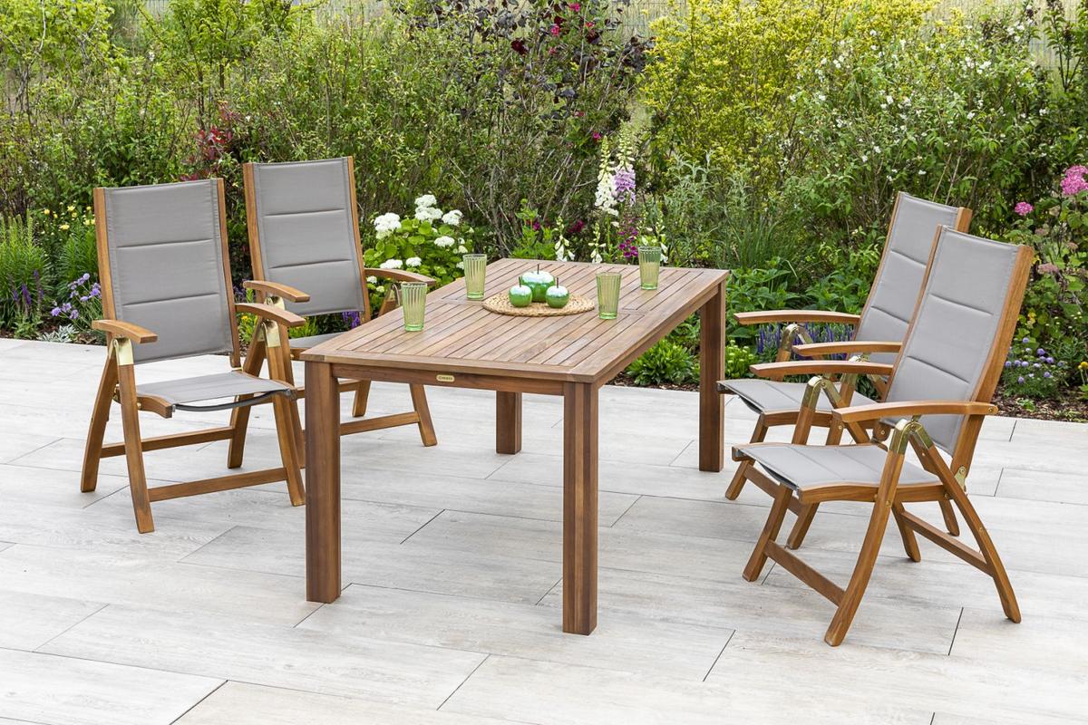 - Besonderheiten: zertifiziert gemäß FSC, Teil einer Serie (Acapulco), Rückenlehnen verstellbar