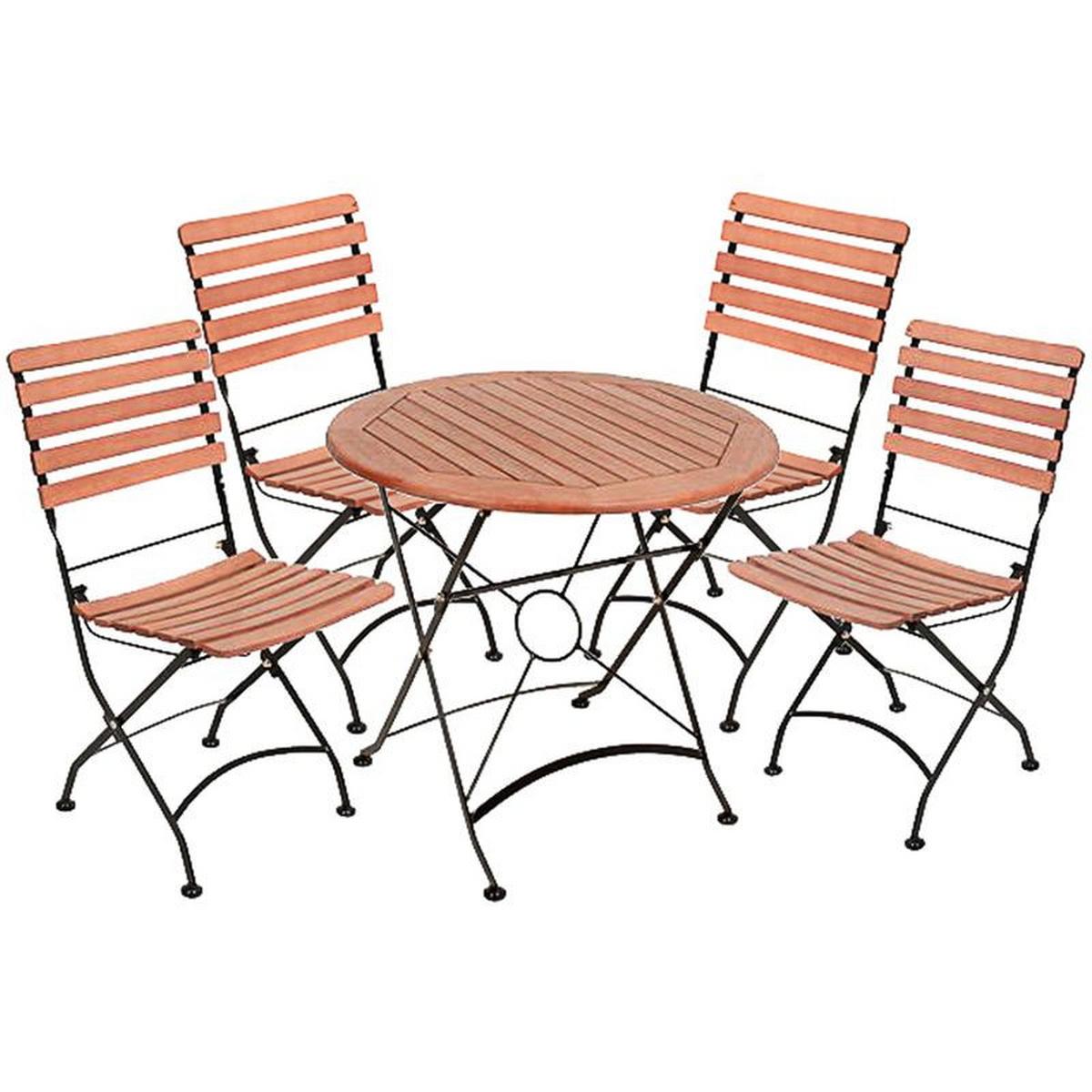 Tischgruppe WIEN: 5-teiliges Gartenset mit Klappstühlen im traditionellen Look