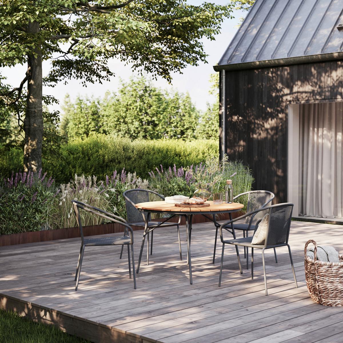 Gartentischgruppe Ellen/Vito 5-teilig, Dunkelgrau/Natur