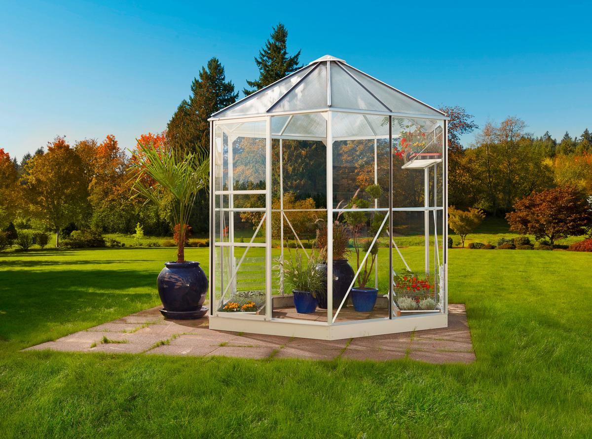 Weißes Gewächshausbausatz APHRODITE mit Pultdach