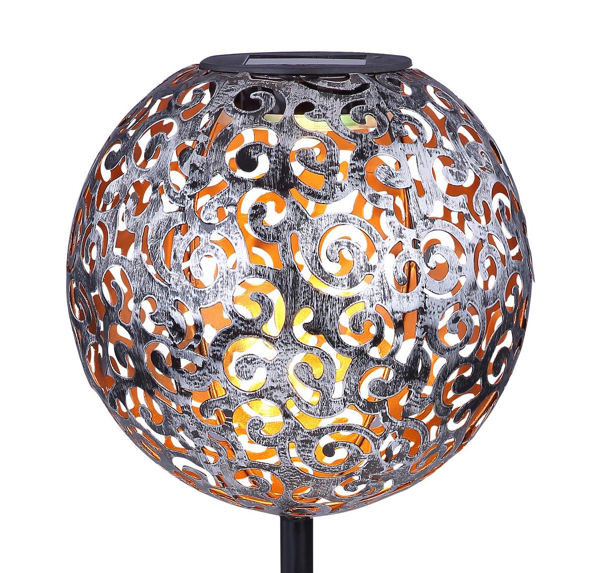 Lichteffekt für draußen: kugelförmige Solarleuchte aus silberfarbenem Metall