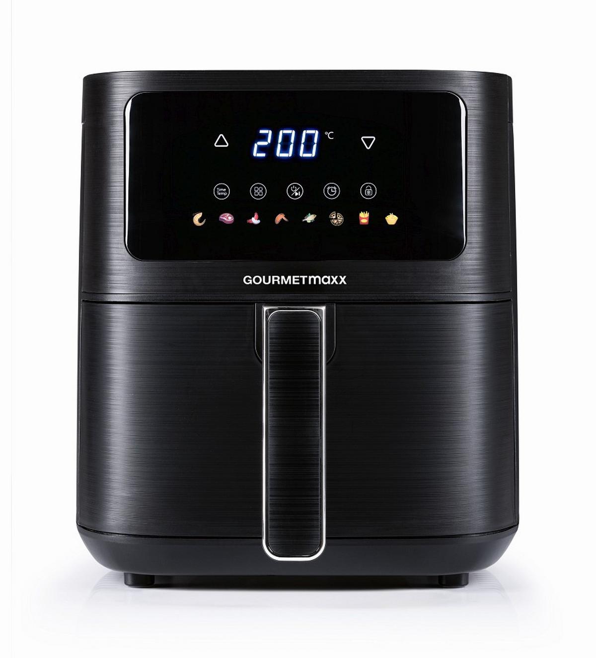 Mit Touchscreen und Digitaldisplay: Diese schwarze Heißluftfritteuse von GOURMETMAXX wird Ihren Alltag noch einfacher machen! Das Gerät misst ca. 36 x 26 x 29,5 cm (B x H x T) und punktet mit effizienter Heißlufttechnologie und einer Leistung von ca. 1.500 Watt.