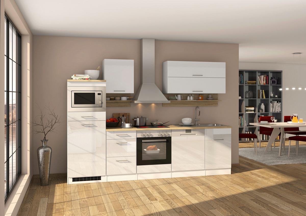 KÜCHENLEERBLOCK Mailand Weiß B: 280 cm - Weiß Hochglanz/Weiß, MODERN, Glas/Holzwerkstoff (280cm) - HeldHeld