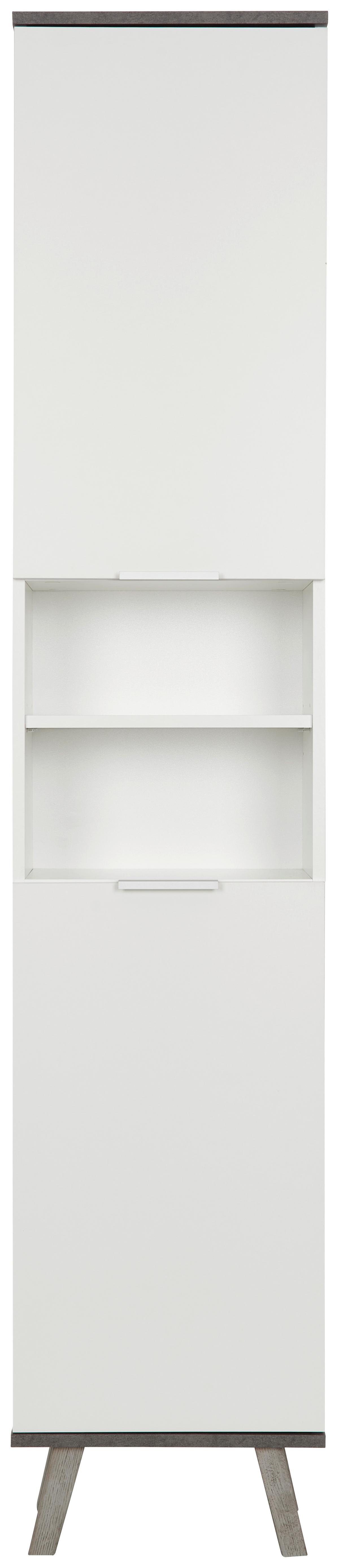 Hochschrank mit Echtholzfüßen Turin B: 40 cm Weiß/Beton