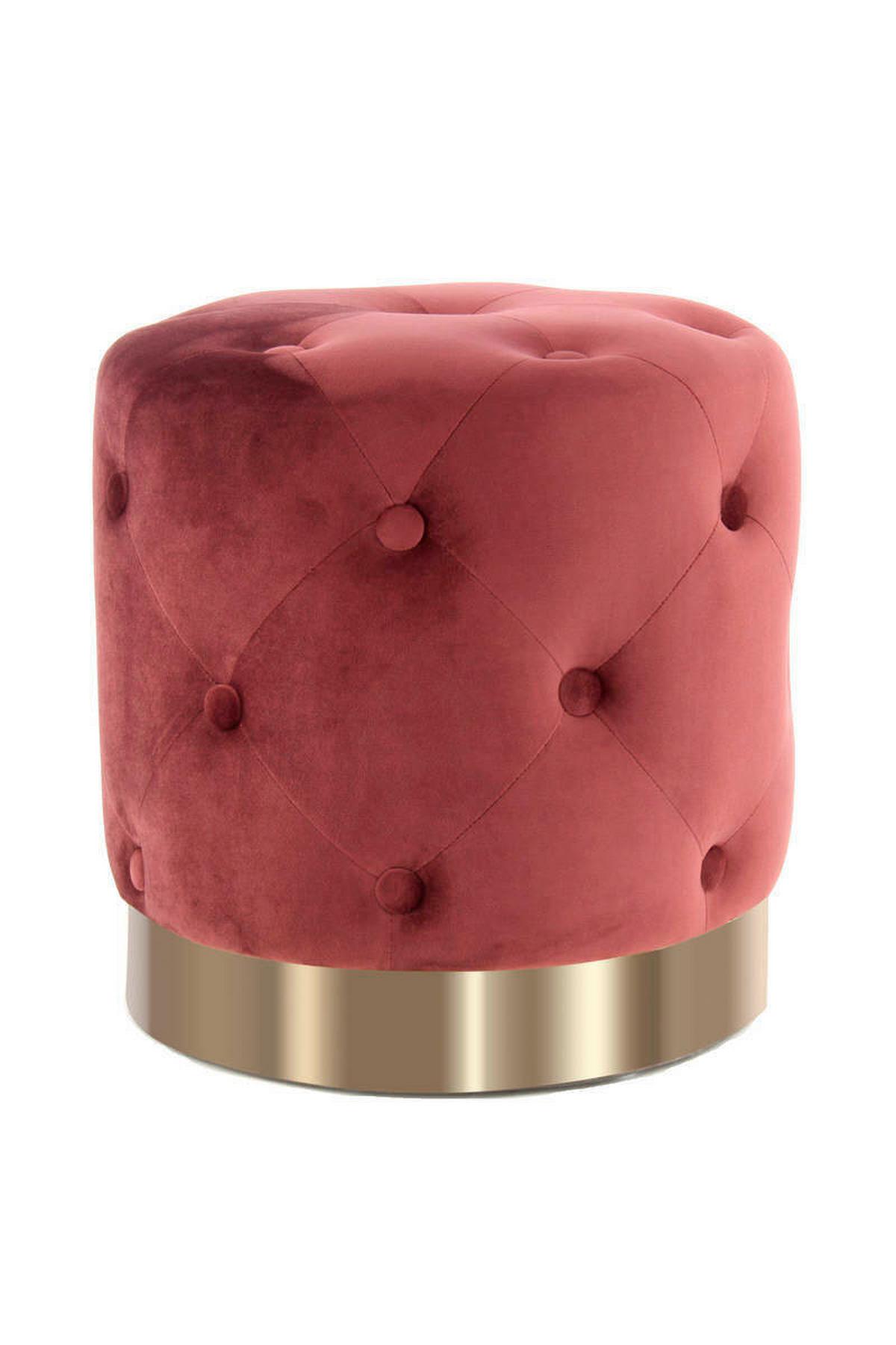 Hocker in Bordeaux & Gold: ein Pouf mit edler Knopfsteppung