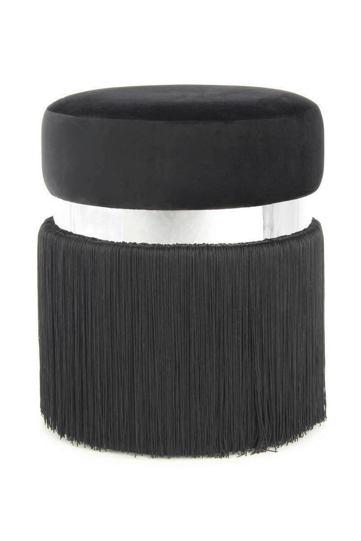 Glamouröses Interior-Highlight: Samt-Hocker REBECCA mit Zierring & Fransen