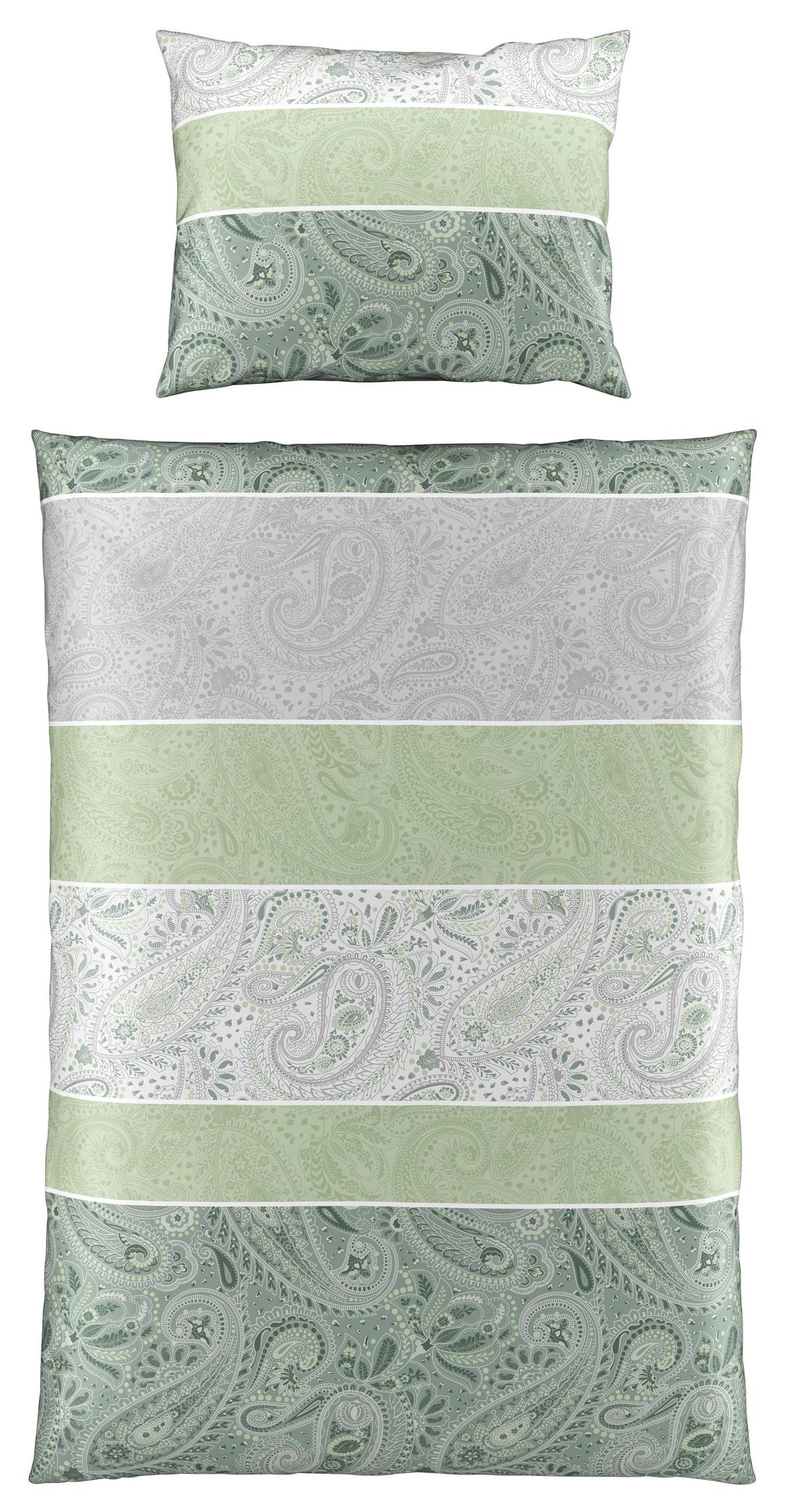 Bettwäsche MARTINA in Grün aus 100% Baumwoll-Satin mit zeitlosem Paisleymuster