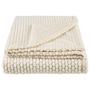 Beigefarbene Kuscheldecke in Strickoptik - perfekt für den Lehnsessel