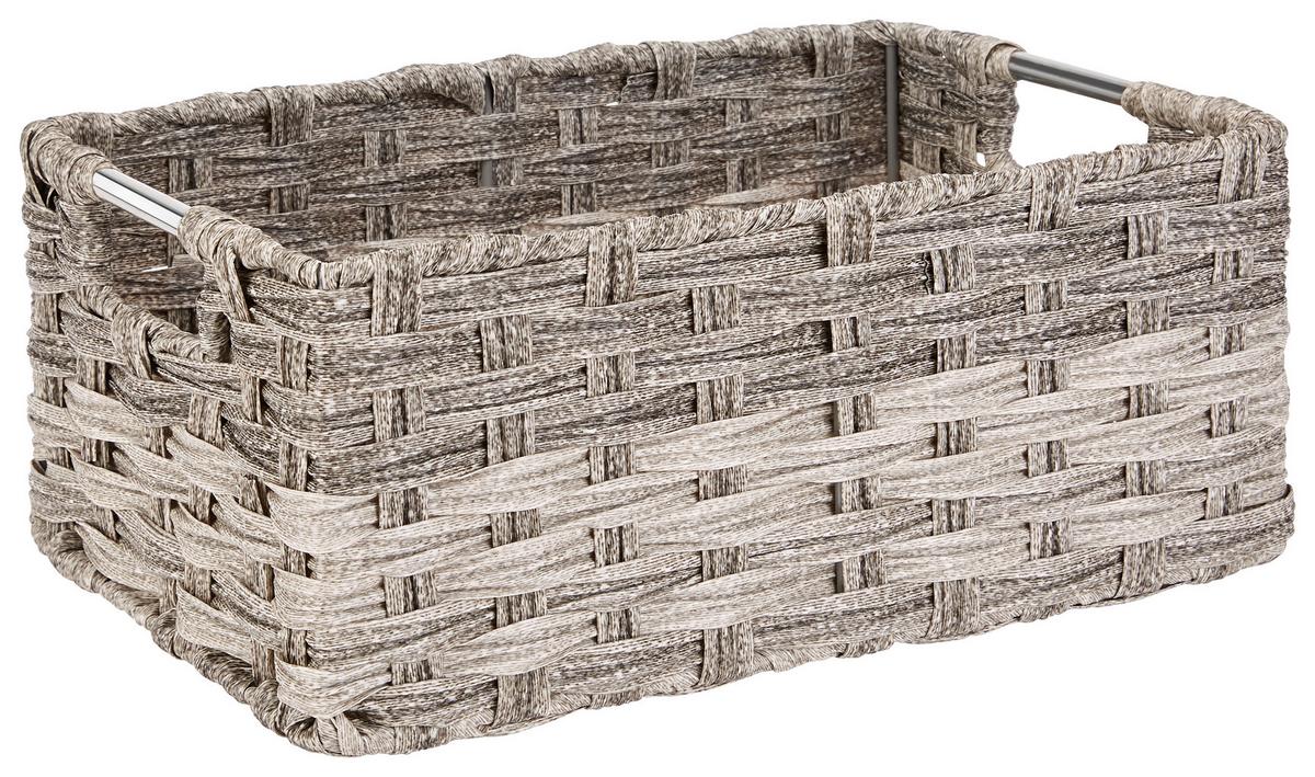 Durch sein dezentes Grau passt der geflochtene Korb aus Kunststoff in jedes Badezimmer.