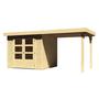 Beim Aufbau mussten erst einige Bretter nachgekauft werden im Baumarkt. Teilweise war die Nut oder wie das richtig heißt abgebrochen oder nicht vorhanden. Wenn man den Bausatz mit den mitgelieferten Schrauben laut Anleitung verschraubt reißen viele Bretter ein. Teilweise sind die Bretter sehr verzogen. Der Aufbau ist äußerst schwierig. Wir mussten uns dann noch einen Tischler dazu holen der uns die Hütte aufgebaut hat weil wir obwohl handwerklich geschickt dies nicht geschafft haben.