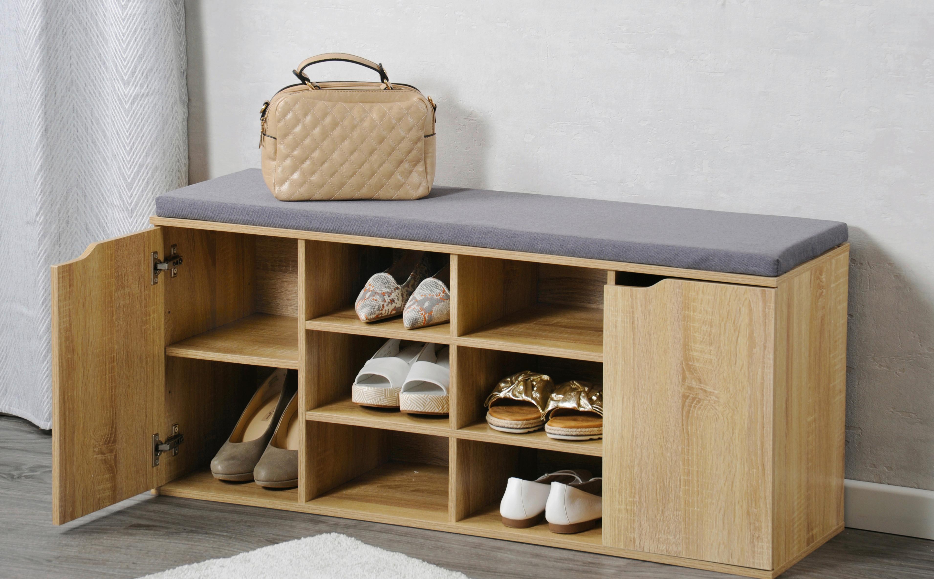 Kesper Schuhschrank Eiche Dekor/grau Mit Sitzkissen B: 103 Cm