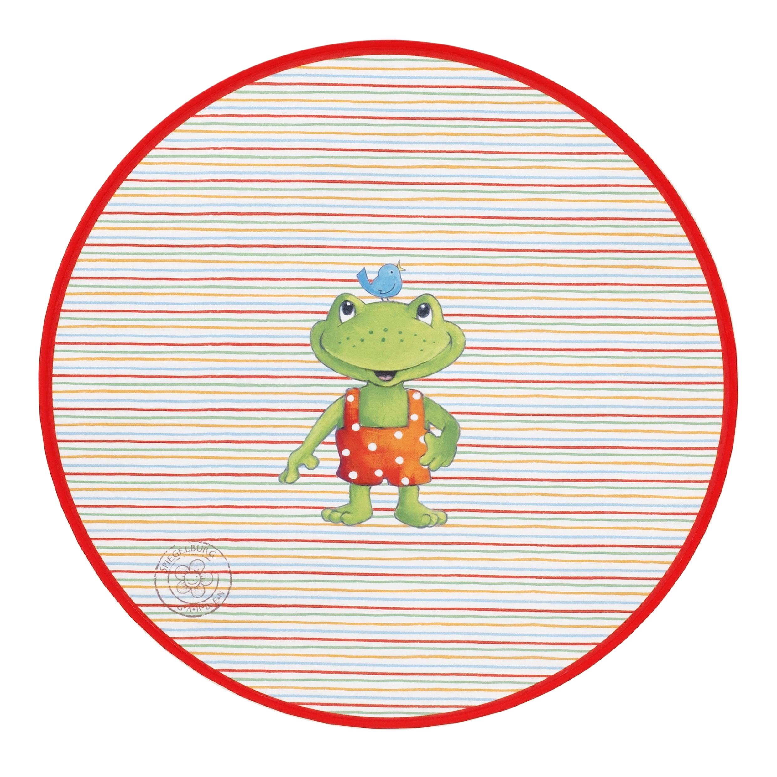 Ab in den Garten - runder Kinderteppich mit lustigem Frosch-Motiv
