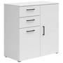 Das ca. 80 x 83 x 40 cm (B x H x T) große Modell besticht mit zwei Türen, zwei Laden und drei Einlegeböden, die großzügige Ablagefläche kann für dekorative Wohnaccessoires und Ziergegenstände genutzt werden. Bügelgriffe runden die Kommode stilvoll ab.